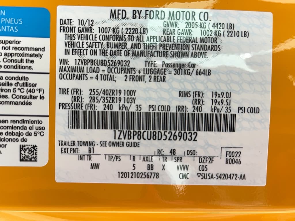 This vehicle glistens in the crowded compact segment! Ford prioritized practicality, efficiency, and style by including: a tachometer, power door mirrors, and 1-touch window functionality. Ford made sure to keep road-handling and sportiness at the top of it's priority list. It features a standard transmission, rear-wheel drive, and 5 liter 8 cylinder engine.